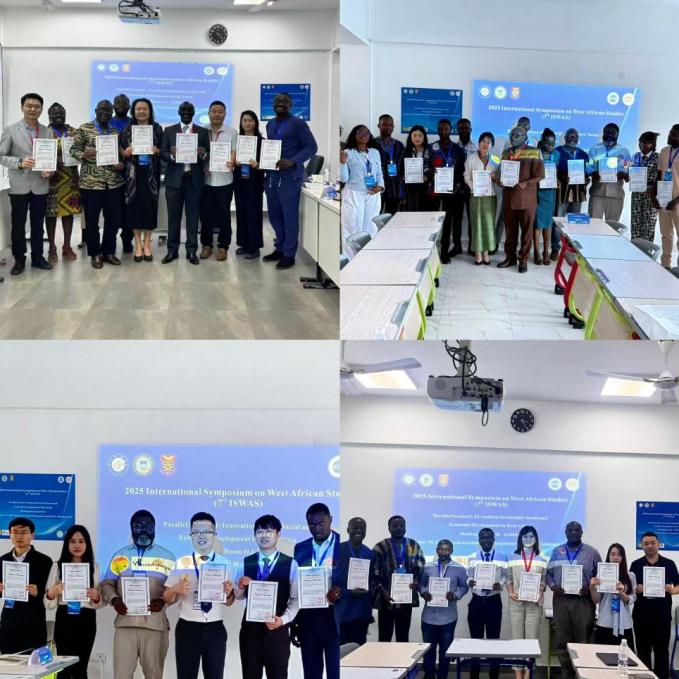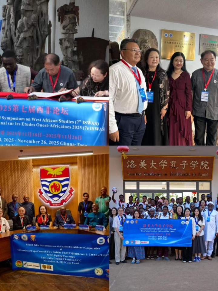 11月18至26日,第七届西非论坛先后在加纳阿克拉、多哥洛美举办并圆满落幕。本届论坛由电子科技大学、加纳行政管理学院、海岸角大学联合主办,电子科技大学西非研究中心、电子科技大学公共管理学院、数智公共治理四川省哲学社会科学重点实验室、加纳海岸角大学国际交流中心、加纳行政管理学院西非研究中心、加纳中华工商总会、加纳Global Afrisino、多哥洛美大学孔子学院、多哥几内亚湾·非洲国际艺术博物馆共9家中外机构共同承办。本届论坛以“西非经济与社会可持续发展:AI赋能与创新驱动”为主题,正值中国和加纳建交65周年的重要历史节点。中国驻加纳大使童德发、中国驻多哥大使王敏、多哥教育部部长级代表尚贝吉、加纳行政管理学院校长塞缪尔・夸库・邦苏、海岸角大学校长丹尼斯・沃拉尼奥・阿赫托、前加纳驻华大使爱德华・博阿滕、电子科技大学校长胡俊(线上)出席论坛。本届论坛吸引了来自中国、加纳、多哥、英国、塞拉利昂等8国的70余名专家学者、政府官员与业界精英围绕“AI赋能”这一前沿研究热点,为共商数智时代中非合作可持续发展研究贡献卓越智慧,推动数字中国先进经验深度落地西非。论坛采用“学术研讨、项目签约、政策对话”三维模式,促成10余项合作成果落地,相关活动被海内外15家主流媒体、机构报道,引发广泛关注。