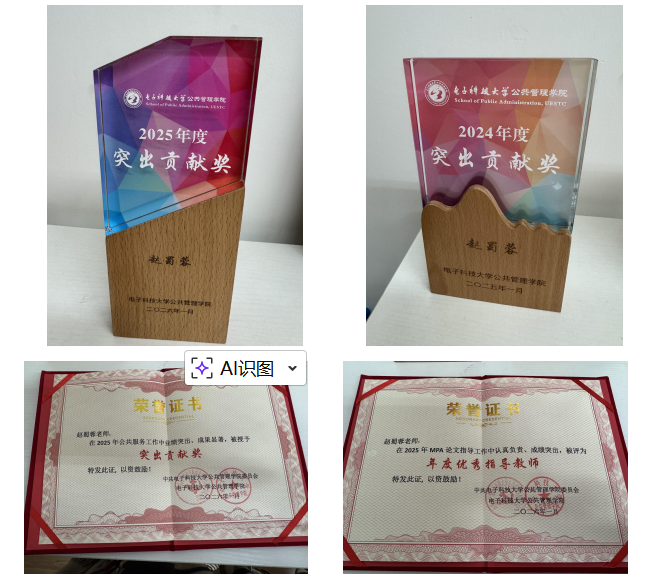 近日,电子科技大学公共管理学院2025年度表彰名单公布,西非研究中心主任赵蜀蓉教授凭借在公共服务领域的卓越业绩与MPA论文指导工作的突出成效,继2024年度获突出贡献奖后再度斩获“突出贡献奖”与“年度优秀指导教师”两项殊荣,为中心及学校发展再添荣光。