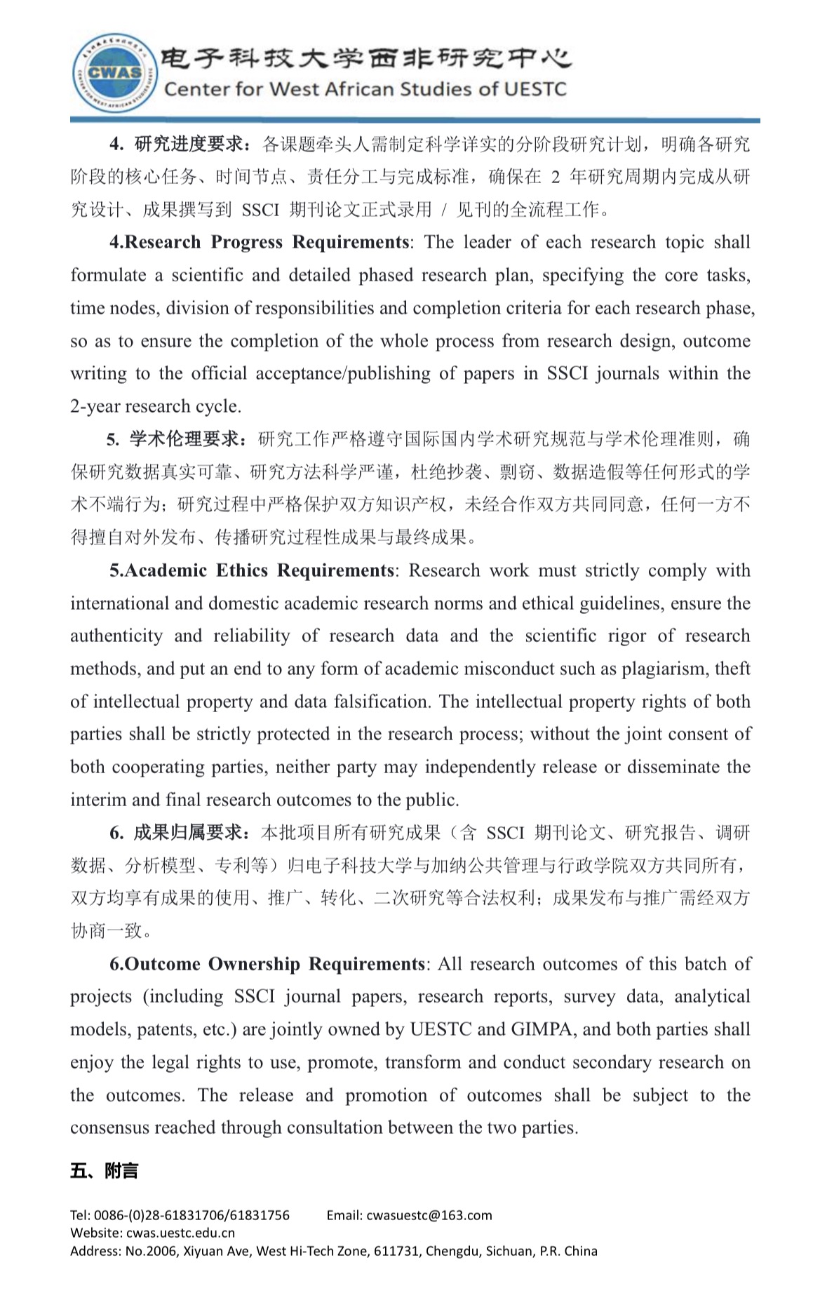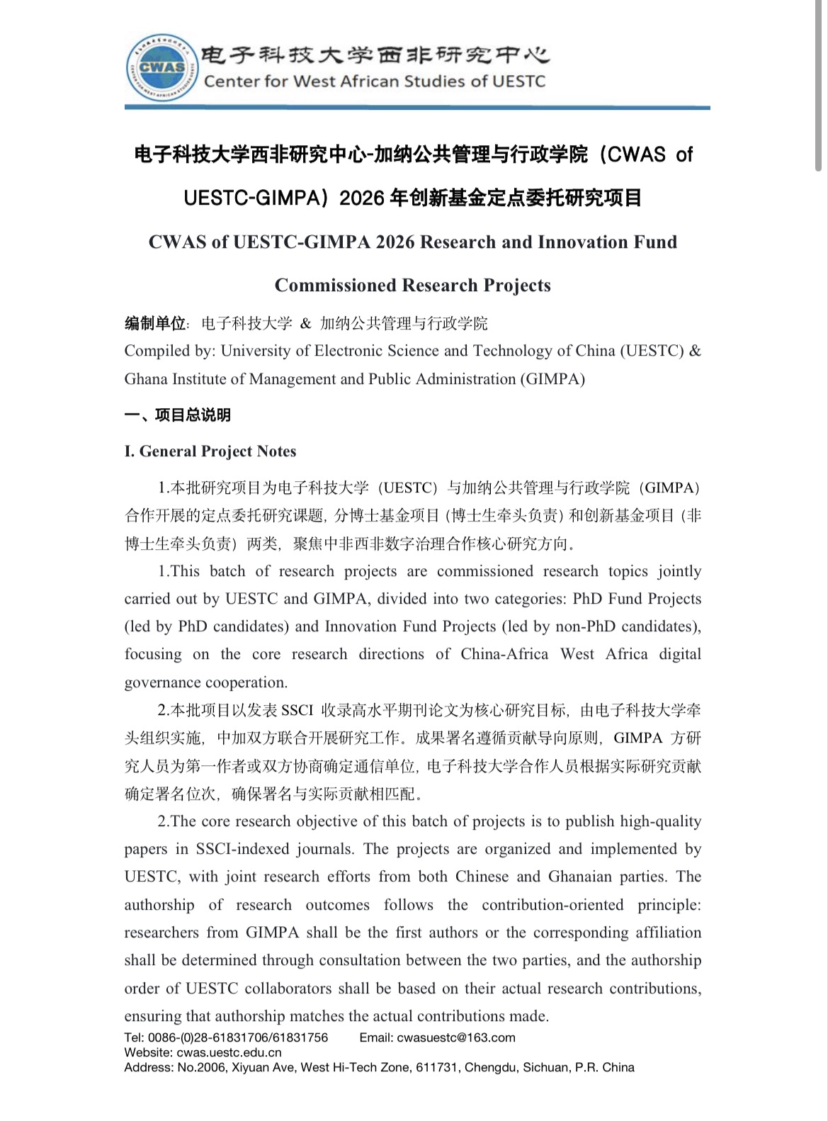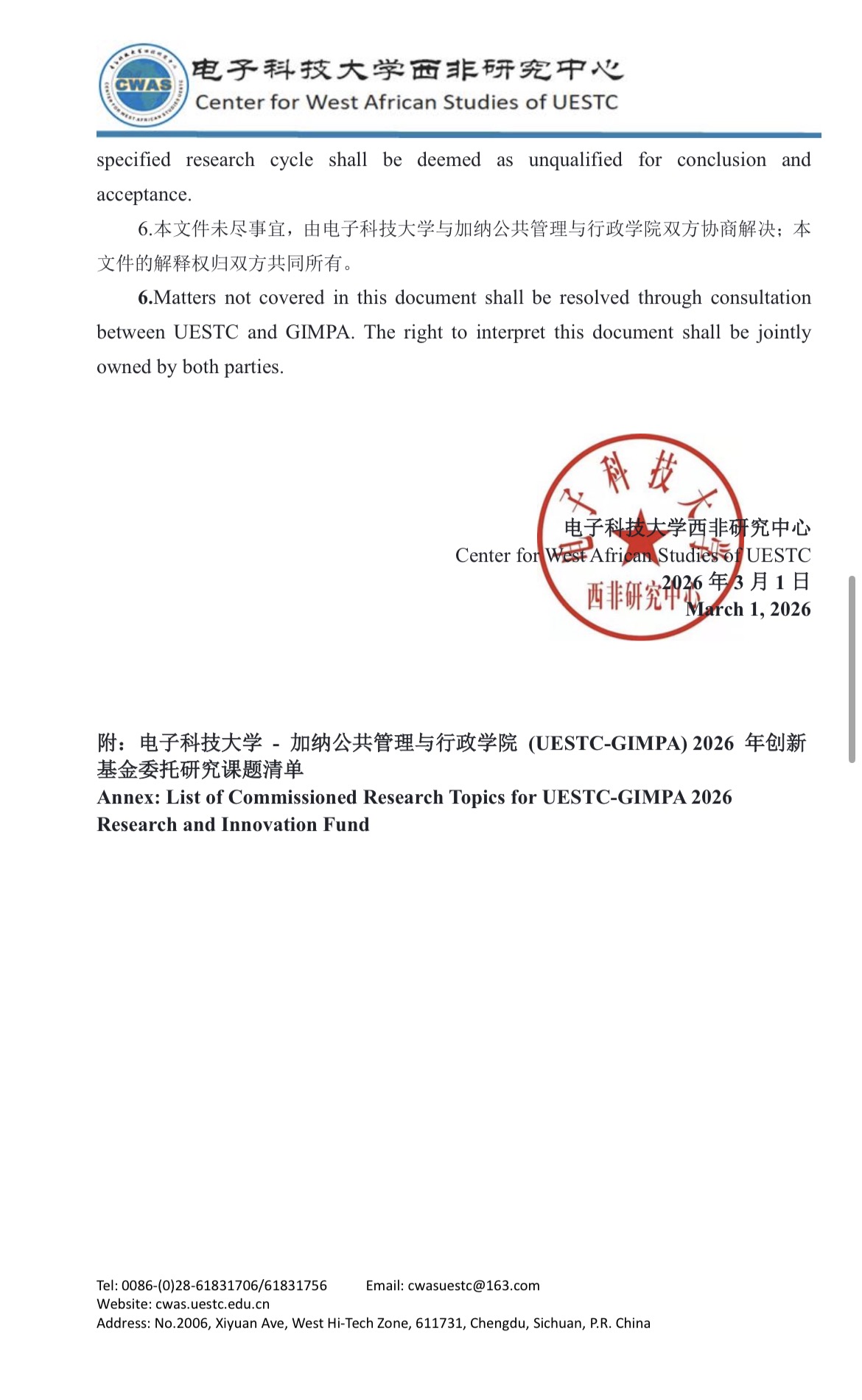 Notice on the Results of the CWAS of UESTC-GIMPA Joint Research and Innovation Fund Projects